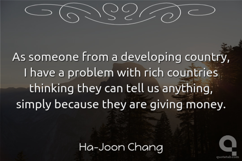 As someone from a developing country, I have a problem with rich countries thinking they can tell us anything, simply because they are giving money.