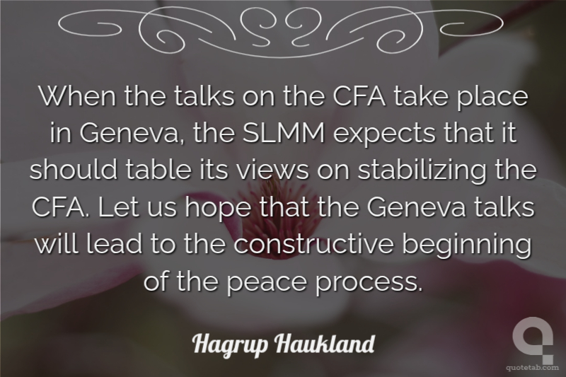 When the talks on the CFA take place in Geneva, the SLMM expects that it should table its views on stabilizing the CFA. Let us hope that the Geneva talks will lead to the constructive beginning of the peace process.