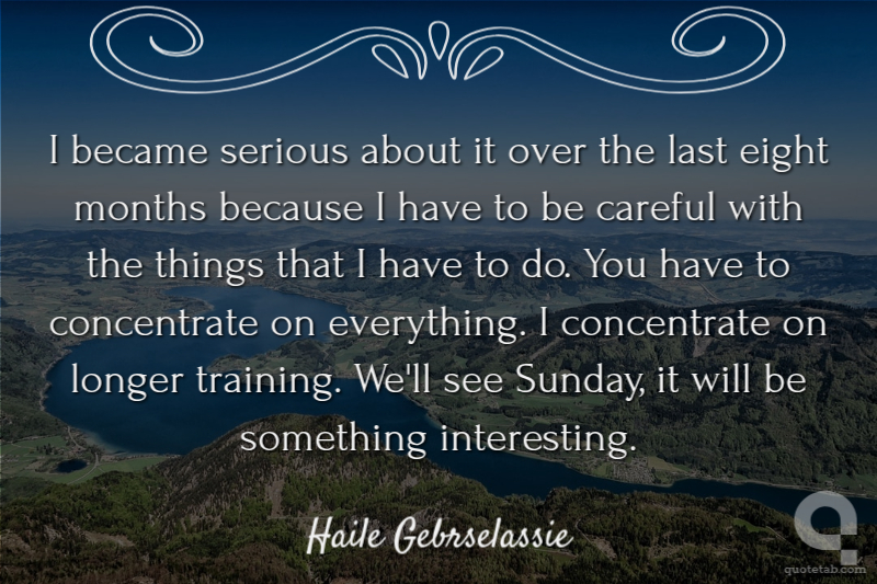 I became serious about it over the last eight months because I have to be careful with the things that I have to do. You have to concentrate on everything. I concentrate on longer training. We'll see Sunday, it will be something interesting.