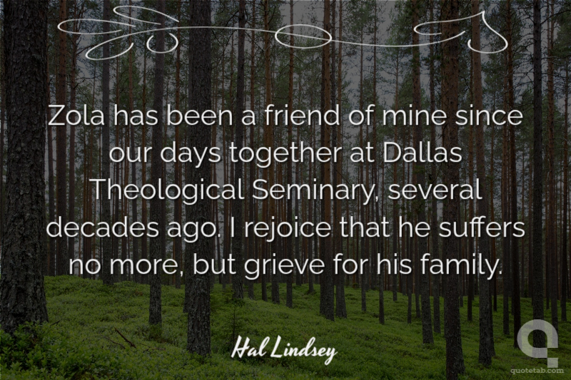 Zola has been a friend of mine since our days together at Dallas Theological Seminary, several decades ago. I rejoice that he suffers no more, but grieve for his family.
