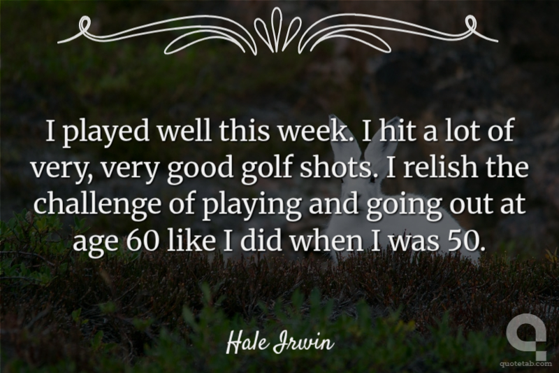 I played well this week. I hit a lot of very, very good golf shots. I relish the challenge of playing and going out at age 60 like I did when I was 50.