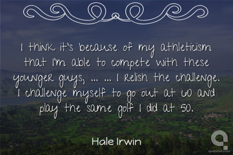 I think it's because of my athleticism that I'm able to compete with these younger guys, ... ... I relish the challenge. I challenge myself to go out at 60 and play the same golf I did at 50.