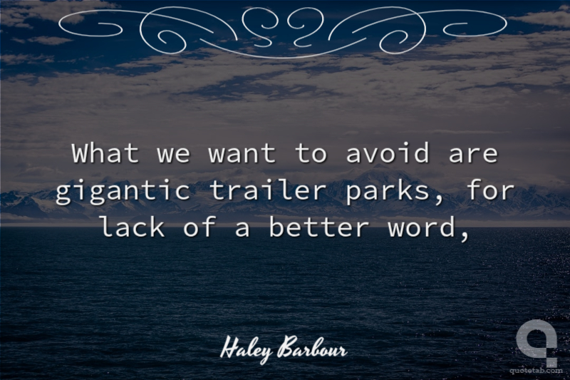 What we want to avoid are gigantic trailer parks, for lack of a better word,