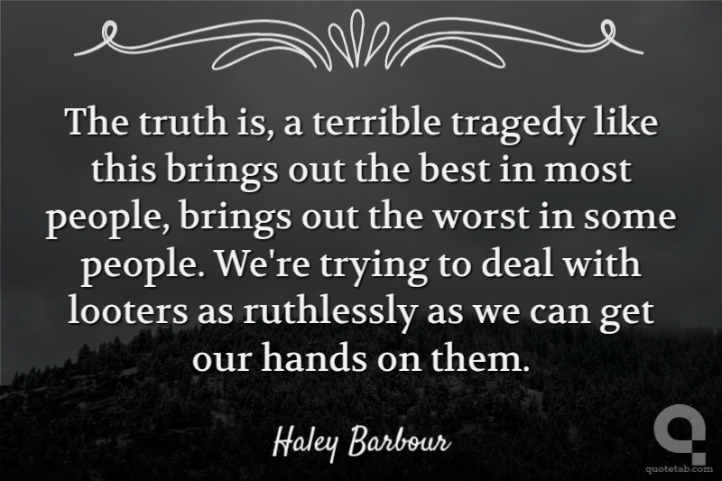 The truth is, a terrible tragedy like this brings out the best in most people, brings out the worst in some people. We're trying to deal with looters as ruthlessly as we can get our hands on them.