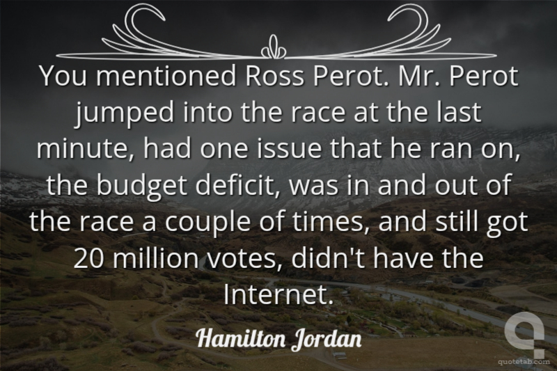 You mentioned Ross Perot. Mr. Perot jumped into the race at the last minute, had one issue that he ran on, the budget deficit, was in and out of the race a couple of times, and still got 20 million votes, didn't have the Internet.