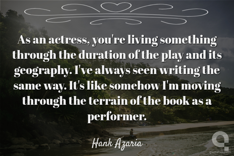 As an actress, you're living something through the duration of the play and its geography. I've always seen writing the same way. It's like somehow I'm moving through the terrain of the book as a performer.
