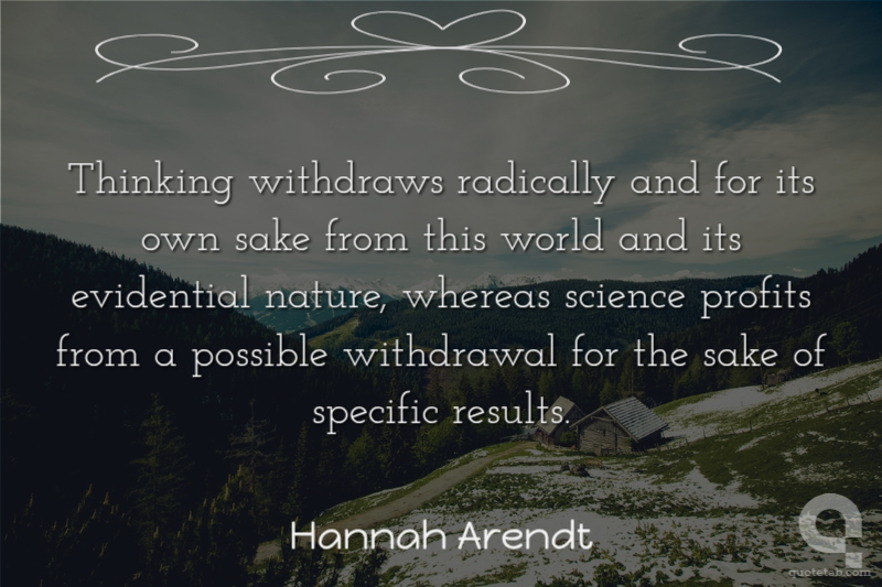 Thinking withdraws radically and for its own sake from this world and its evidential nature, whereas science profits from a possible withdrawal for the sake of specific results.