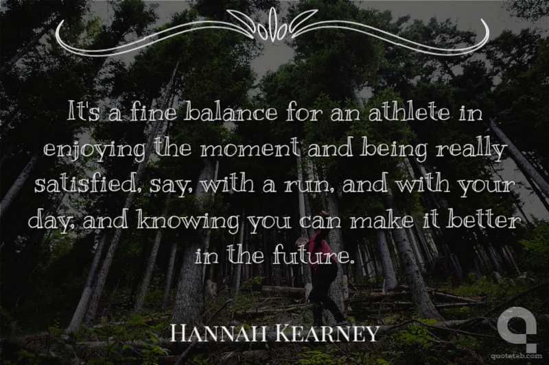 It's a fine balance for an athlete in enjoying the moment and being really satisfied, say, with a run, and with your day, and knowing you can make it better in the future.