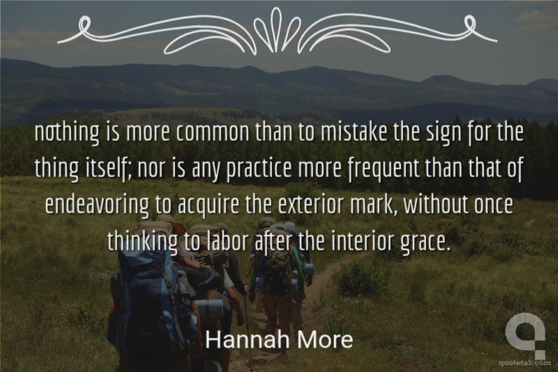 nothing is more common than to mistake the sign for the thing itself; nor is any practice more frequent than that of endeavoring to acquire the exterior mark, without once thinking to labor after the interior grace.