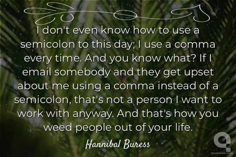 I don't even know how to use a semicolon to this day; I use a comma every time. And you know what? If I email somebody and they get upset about me using a comma instead of a semicolon, that's not a person I want to work with anyway. And that's how you weed people out of your life.