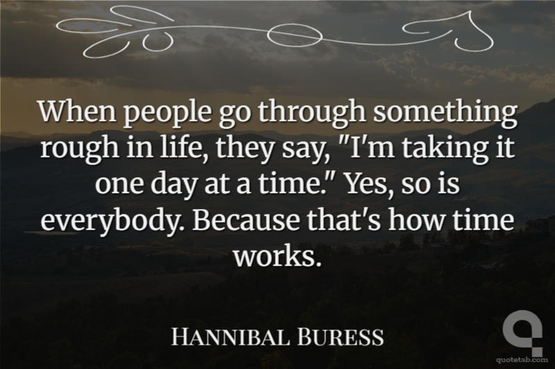 When people go through something rough in life, they say, "I'm taking it one day at a time." Yes, so is everybody. Because that's how time works.