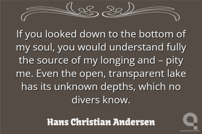If you looked down to the bottom of my soul, you would understand fully the source of my longing and – pity me. Even the open, transparent lake has its unknown depths, which no divers know.
