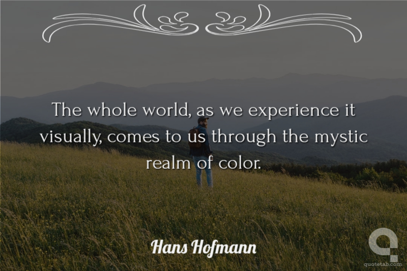 The whole world, as we experience it visually, comes to us through the mystic realm of color.