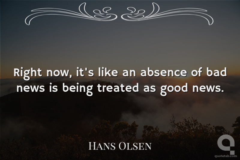 Right now, it's like an absence of bad news is being treated as good news.