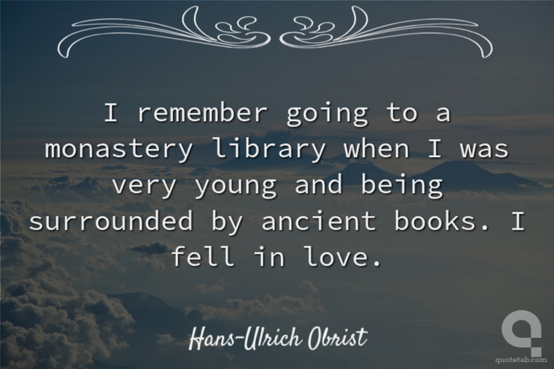 I remember going to a monastery library when I was very young and being surrounded by ancient books. I fell in love.