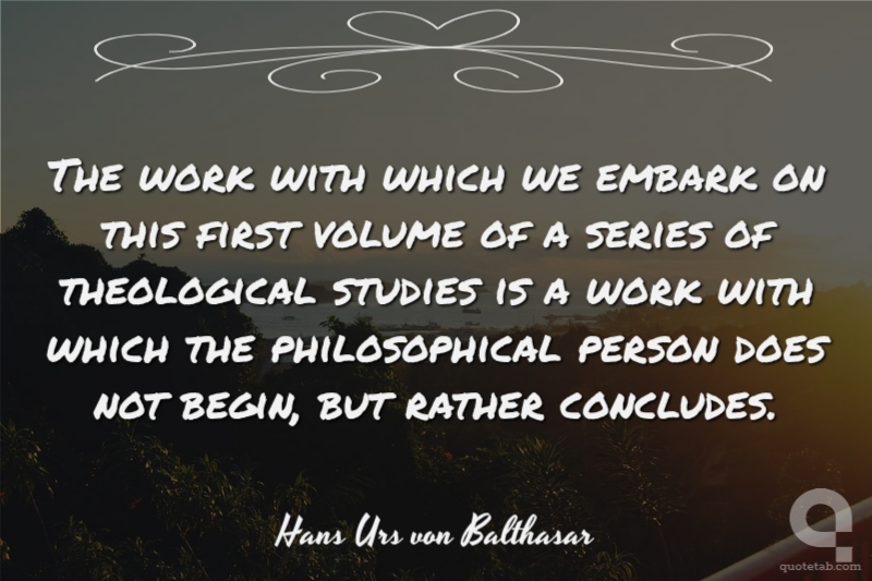 The work with which we embark on this first volume of a series of theological studies is a work with which the philosophical person does not begin, but rather concludes.