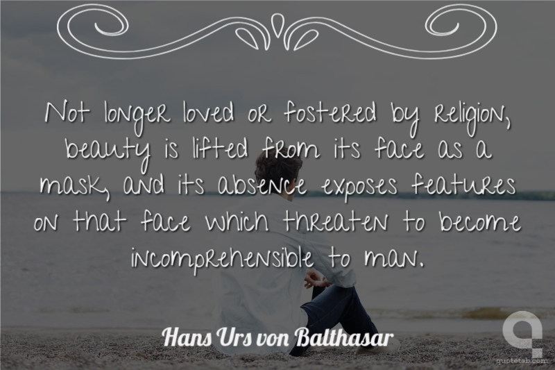 Not longer loved or fostered by religion, beauty is lifted from its face as a mask, and its absence exposes features on that face which threaten to become incomprehensible to man.