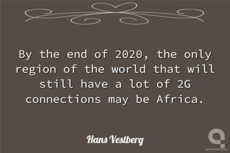 By the end of 2020, the only region of the world that will still have a lot of 2G connections may be Africa.