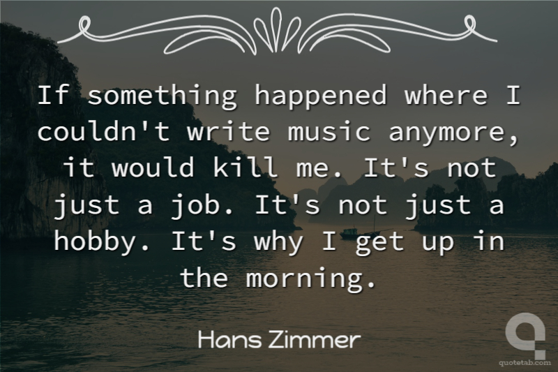 If something happened where I couldn't write music anymore, it would kill me. It's not just a job. It's not just a hobby. It's why I get up in the morning.