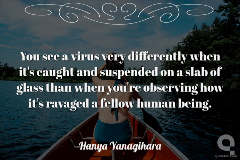 You see a virus very differently when it's caught and suspended on a slab of glass than when you're observing how it's ravaged a fellow human being.
