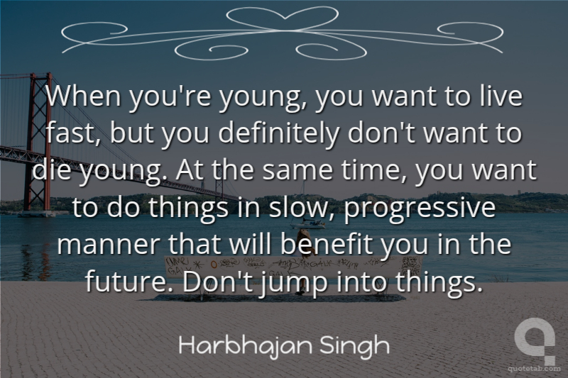 When you're young, you want to live fast, but you definitely don't want to die young. At the same time, you want to do things in slow, progressive manner that will benefit you in the future. Don't jump into things.