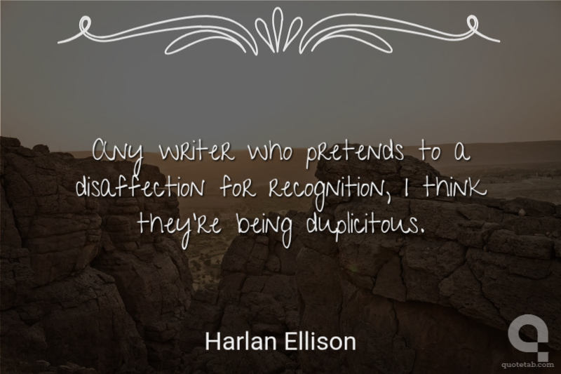 Any writer who pretends to a disaffection for recognition, I think they're being duplicitous.