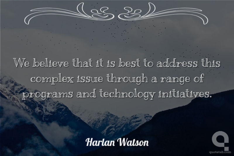We believe that it is best to address this complex issue through a range of programs and technology initiatives.