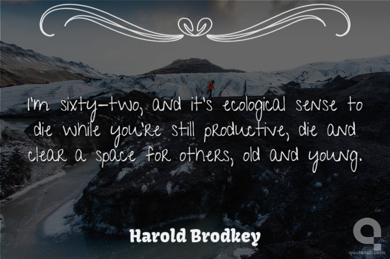 I'm sixty-two, and it's ecological sense to die while you're still productive, die and clear a space for others, old and young.