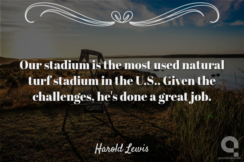 Our stadium is the most used natural turf stadium in the U.S.. Given the challenges, he's done a great job.