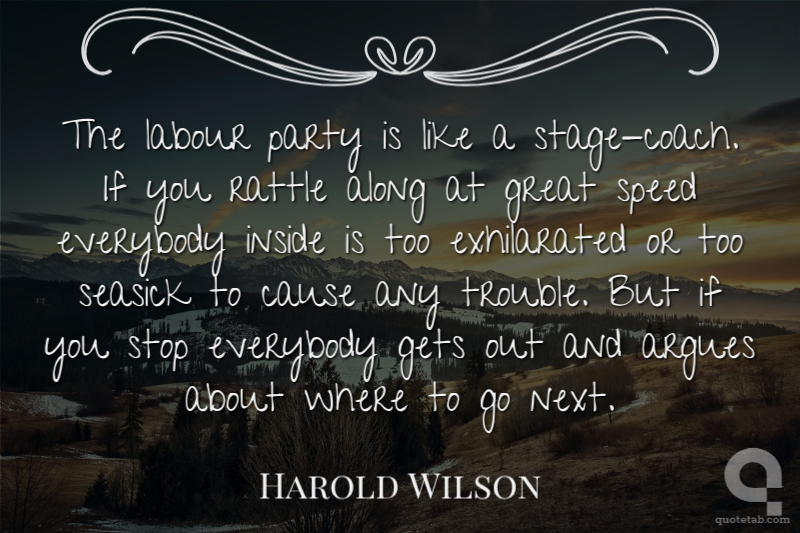 The labour party is like a stage-coach. If you rattle along at great speed everybody inside is too exhilarated or too seasick to cause any trouble. But if you stop everybody gets out and argues about where to go next.