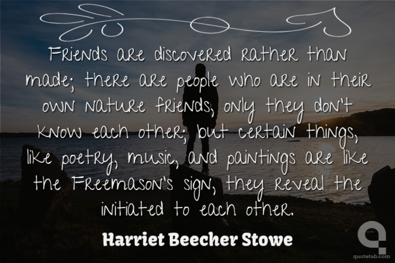 Friends are discovered rather than made; there are people who are in their own nature friends, only they don't know each other; but certain things, like poetry, music, and paintings are like the Freemason's sign, they reveal the initiated to each other.
