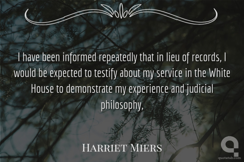 I have been informed repeatedly that in lieu of records, I would be expected to testify about my service in the White House to demonstrate my experience and judicial philosophy,