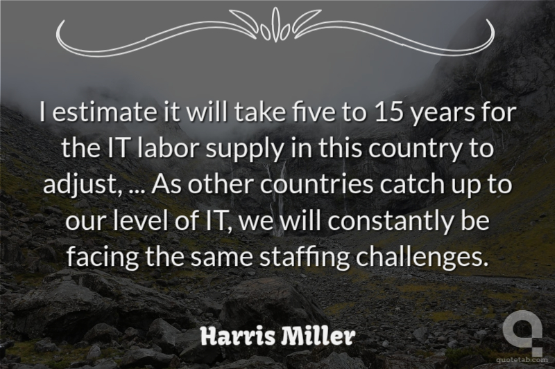 I estimate it will take five to 15 years for the IT labor supply in this country to adjust, ... As other countries catch up to our level of IT, we will constantly be facing the same staffing challenges.
