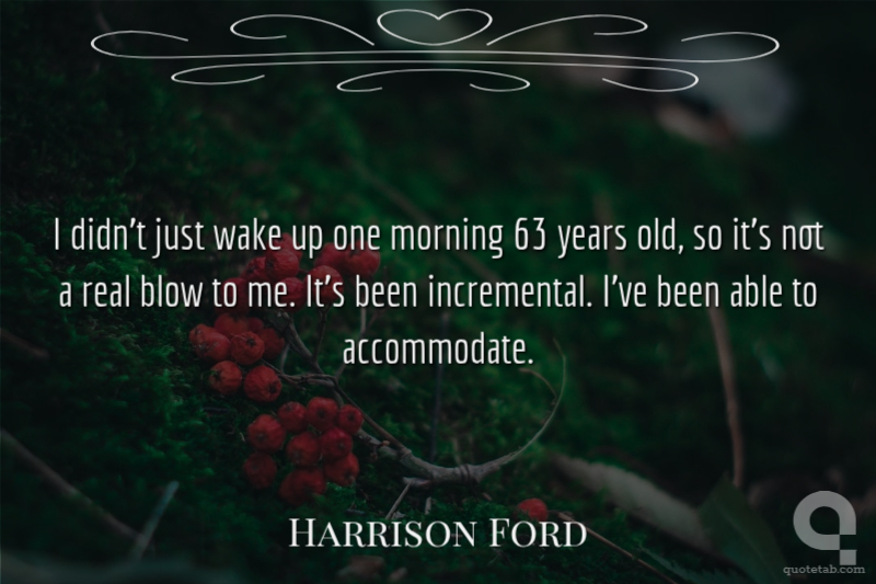 I didn't just wake up one morning 63 years old, so it's not a real blow to me. It's been incremental. I've been able to accommodate.