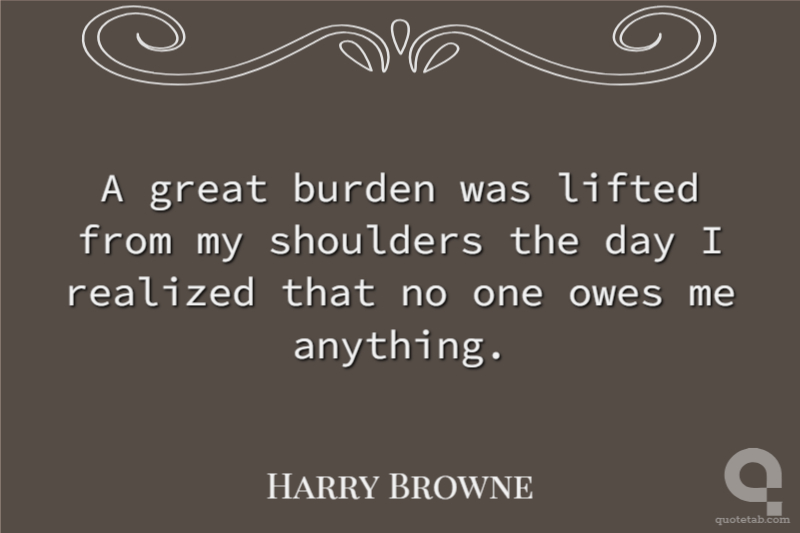 A great burden was lifted from my shoulders the day I realized that no one owes me anything.