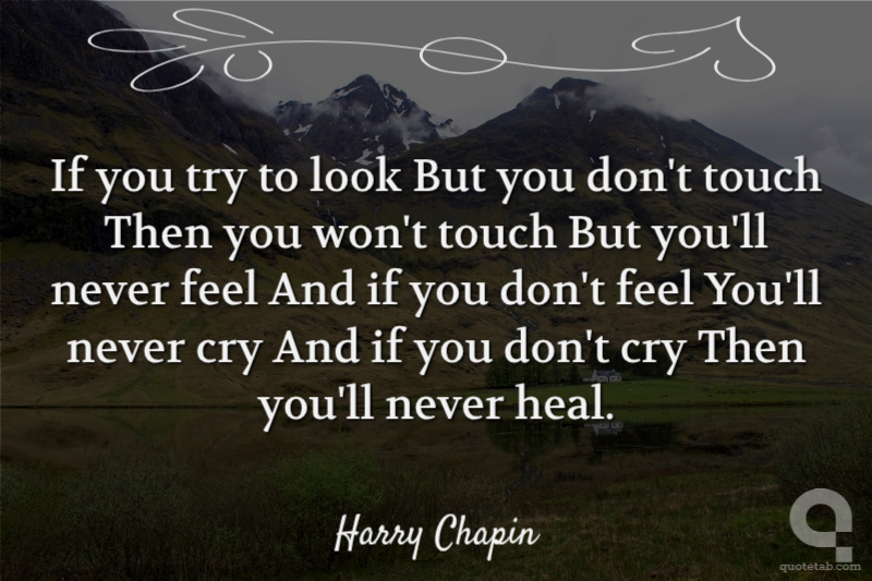 If you try to look But you don't touch Then you won't touch But you'll never feel And if you don't feel You'll never cry And if you don't cry Then you'll never heal.