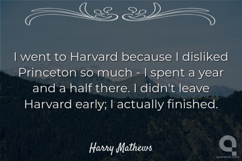 I went to Harvard because I disliked Princeton so much - I spent a year and a half there. I didn't leave Harvard early; I actually finished.