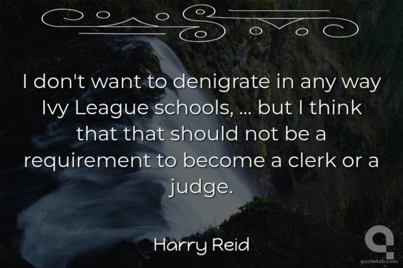 I don't want to denigrate in any way Ivy League schools, ... but I think that that should not be a requirement to become a clerk or a judge.