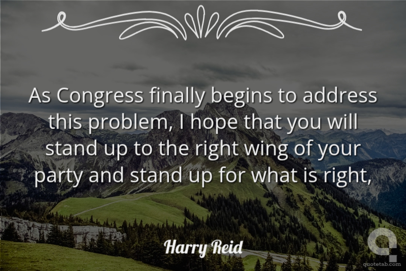 As Congress finally begins to address this problem, I hope that you will stand up to the right wing of your party and stand up for what is right,