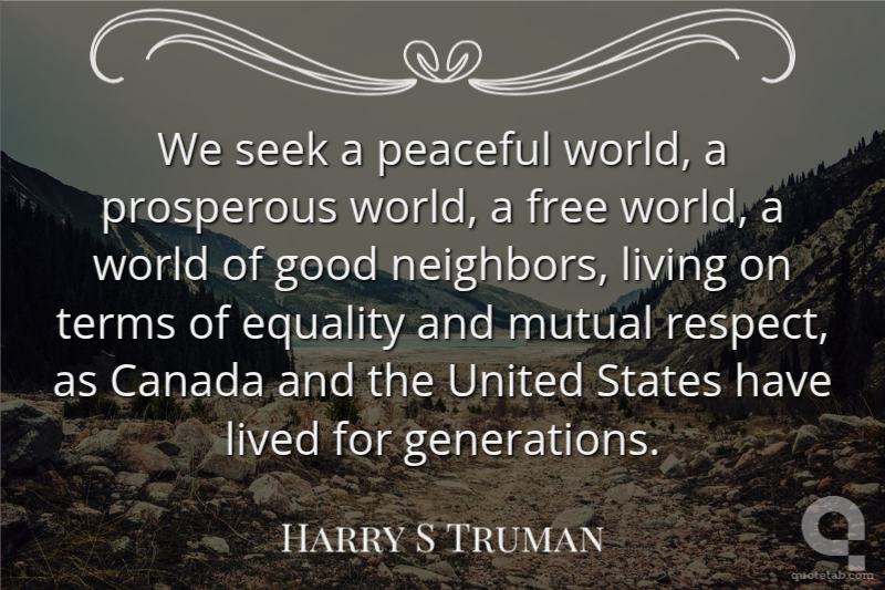 We seek a peaceful world, a prosperous world, a free world, a world of good neighbors, living on terms of equality and mutual respect, as Canada and the United States have lived for generations.