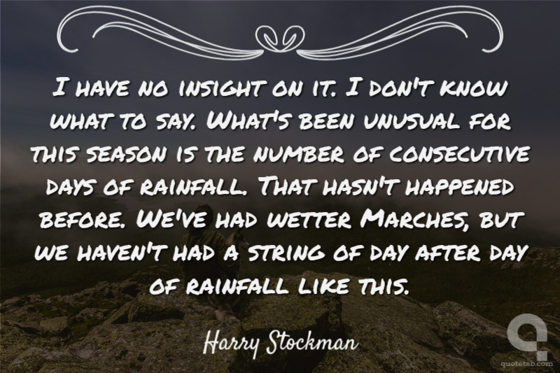 I have no insight on it. I don't know what to say. What's been unusual for this season is the number of consecutive days of rainfall. That hasn't happened before. We've had wetter Marches, but we haven't had a string of day after day of rainfall like this.