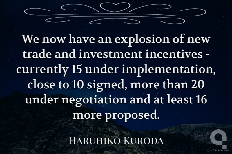 We now have an explosion of new trade and investment incentives - currently 15 under implementation, close to 10 signed, more than 20 under negotiation and at least 16 more proposed.