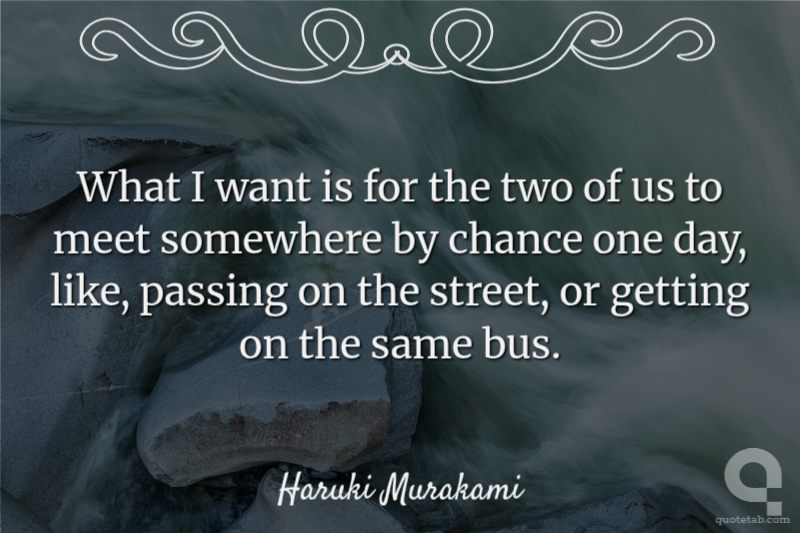 What I want is for the two of us to meet somewhere by chance one day, like, passing on the street, or getting on the same bus.
