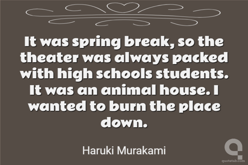 It was spring break, so the theater was always packed with high schools students. It was an animal house. I wanted to burn the place down.