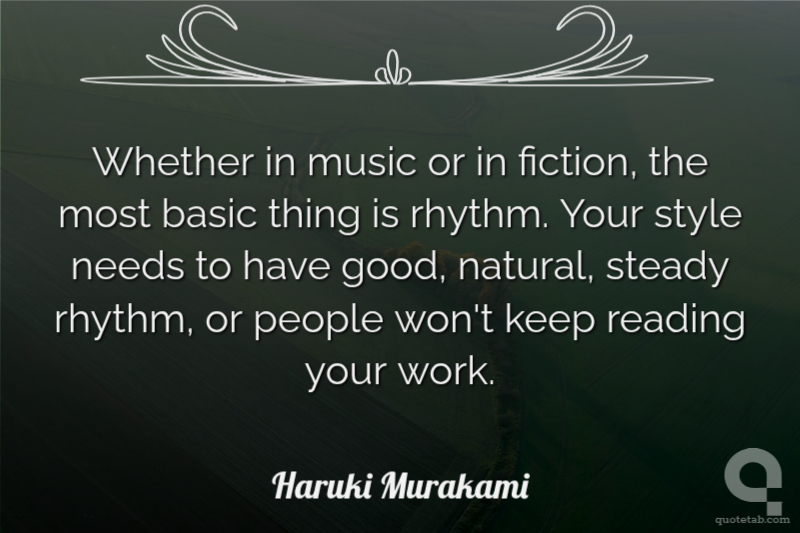 Whether in music or in fiction, the most basic thing is rhythm. Your style needs to have good, natural, steady rhythm, or people won't keep reading your work.