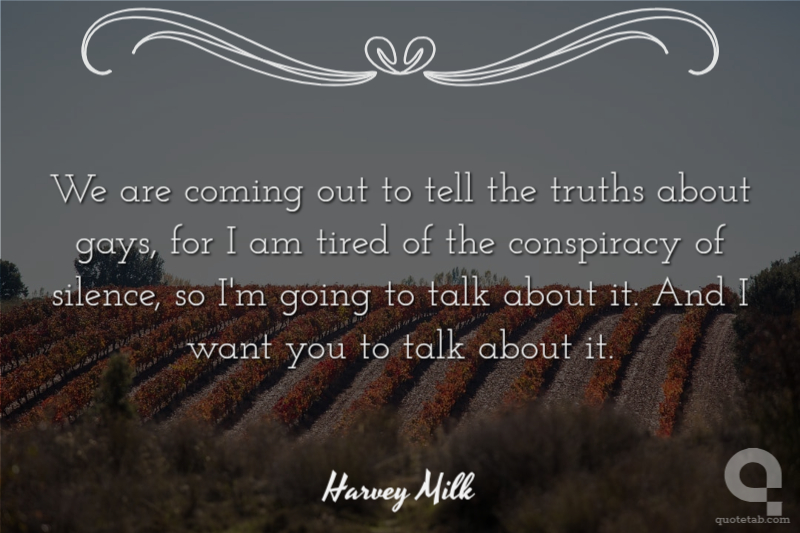 We are coming out to tell the truths about gays, for I am tired of the conspiracy of silence, so I'm going to talk about it. And I want you to talk about it.