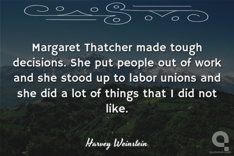 Margaret Thatcher made tough decisions. She put people out of work and she stood up to labor unions and she did a lot of things that I did not like.