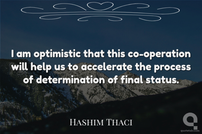 I am optimistic that this co-operation will help us to accelerate the process of determination of final status.