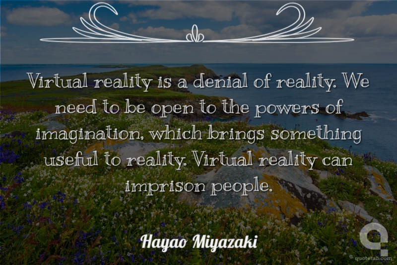 Virtual reality is a denial of reality. We need to be open to the powers of imagination, which brings something useful to reality. Virtual reality can imprison people.