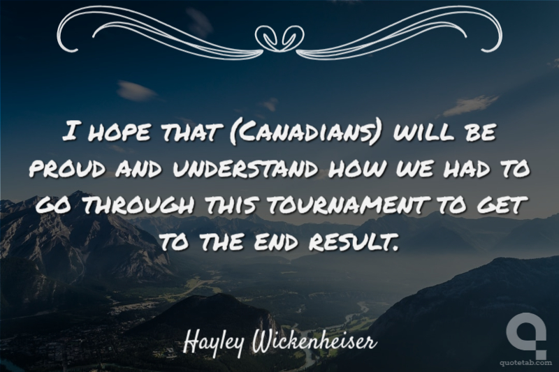I hope that (Canadians) will be proud and understand how we had to go through this tournament to get to the end result.